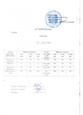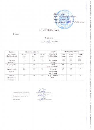 26 сентябрь 2024 0 1 2 3 4 5 №91 жалпы орта білім беретін мектебінің ыстық тамақпен қамтылуы Теги: Ас мәзірі